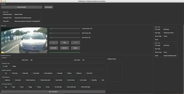 PedAnalyze is a Python-based video annotation tool to assist autonomous vehicle development and safety enhancement by capturing pedestrian and vehicle behaviors on the road, allowing researchers to use patterns to develop new technology.