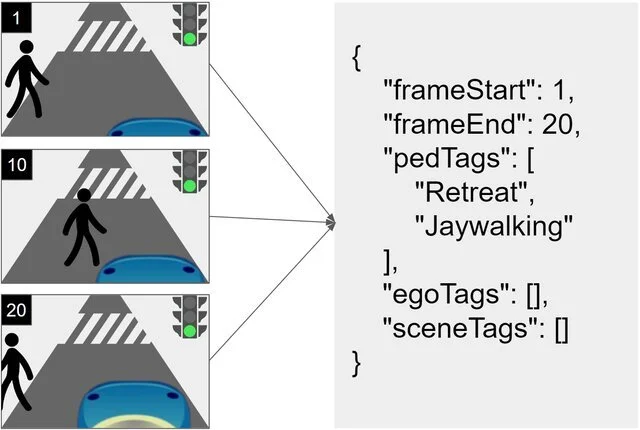 Enables the analysis of pedestrian behavior across multiple video frames, using dashcam videos from YouTube/social media
